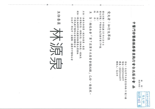 | 台北市中醫師公會 官網:http://www.tpcma.org.tw 地址:台北市中正區青島西路11號3樓 E-mail:tp.cma@msa.hinet.net 電話:(02)2314-3456(代表號) 傳真:(02)2314-8181 |