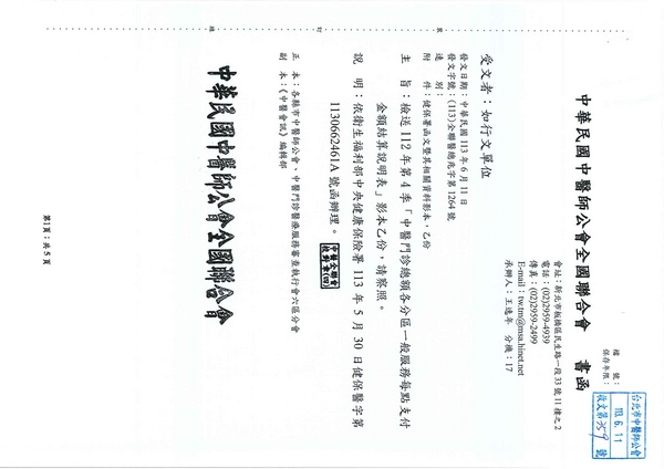 | 台北市中醫師公會 官網:http://www.tpcma.org.tw 地址:台北市中正區青島西路11號3樓 E-mail:tp.cma@msa.hinet.net 電話:(02)2314-3456(代表號) 傳真:(02)2314-8181 |