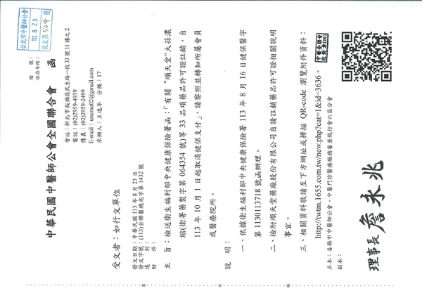 | 台北市中醫師公會 官網:http://www.tpcma.org.tw 地址:台北市中正區青島西路11號3樓 E-mail:tp.cma@msa.hinet.net 電話:(02)2314-3456(代表號) 傳真:(02)2314-8181 |