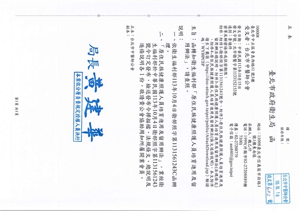 | 台北市中醫師公會 官網:http://www.tpcma.org.tw 地址:台北市中正區青島西路11號3樓 E-mail:tp.cma@msa.hinet.net 電話:(02)2314-3456(代表號) 傳真:(02)2314-8181 |