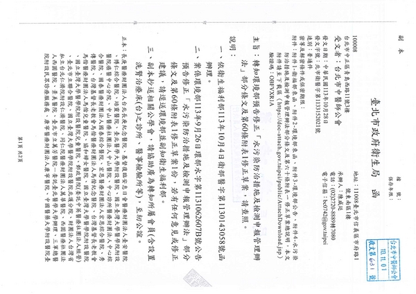 | 台北市中醫師公會 官網:http://www.tpcma.org.tw 地址:台北市中正區青島西路11號3樓 E-mail:tp.cma@msa.hinet.net 電話:(02)2314-3456(代表號) 傳真:(02)2314-8181 |
