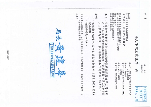| 台北市中醫師公會 官網:http://www.tpcma.org.tw 地址:台北市中正區青島西路11號3樓 E-mail:tp.cma@msa.hinet.net 電話:(02)2314-3456(代表號) 傳真:(02)2314-8181 |