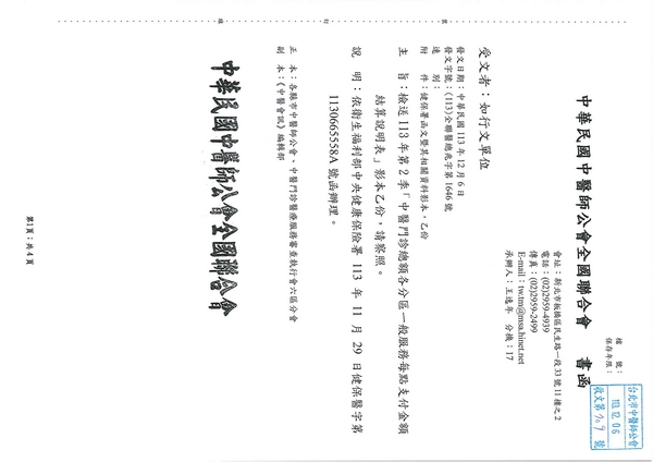 | 台北市中醫師公會 官網:http://www.tpcma.org.tw 地址:台北市中正區青島西路11號3樓 E-mail:tp.cma@msa.hinet.net 電話:(02)2314-3456(代表號) 傳真:(02)2314-8181 |