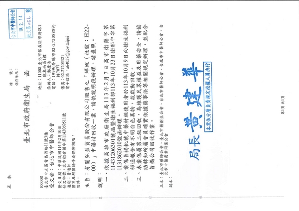 | 台北市中醫師公會 官網:http://www.tpcma.org.tw 地址:台北市中正區青島西路11號3樓 E-mail:tp.cma@msa.hinet.net 電話:(02)2314-3456(代表號) 傳真:(02)2314-8181 |