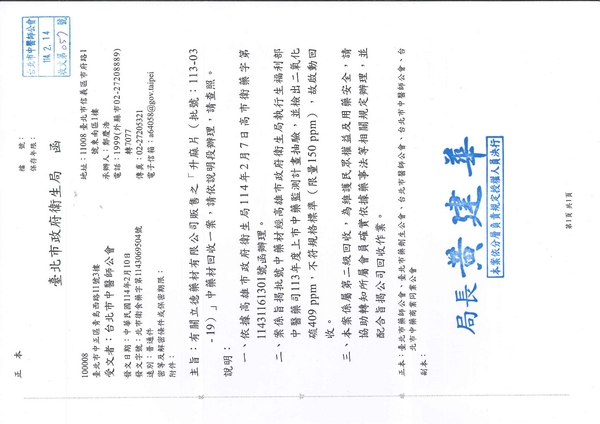 | 台北市中醫師公會 官網:http://www.tpcma.org.tw 地址:台北市中正區青島西路11號3樓 E-mail:tp.cma@msa.hinet.net 電話:(02)2314-3456(代表號) 傳真:(02)2314-8181 |