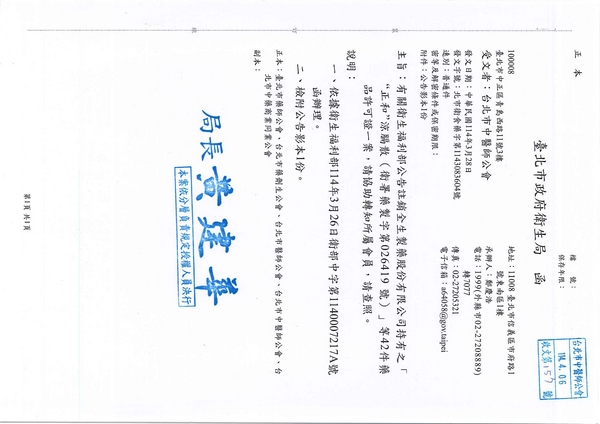| 台北市中醫師公會 官網:http://www.tpcma.org.tw 地址:台北市中正區青島西路11號3樓 E-mail:tp.cma@msa.hinet.net 電話:(02)2314-3456(代表號) 傳真:(02)2314-8181 |
