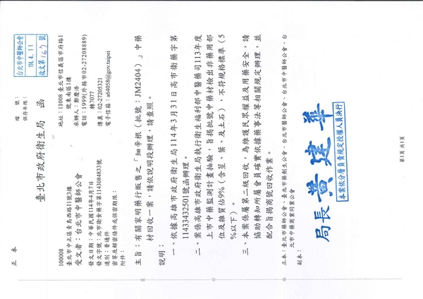 | 台北市中醫師公會 官網:http://www.tpcma.org.tw 地址:台北市中正區青島西路11號3樓 E-mail:tp.cma@msa.hinet.net 電話:(02)2314-3456(代表號) 傳真:(02)2314-8181 |
