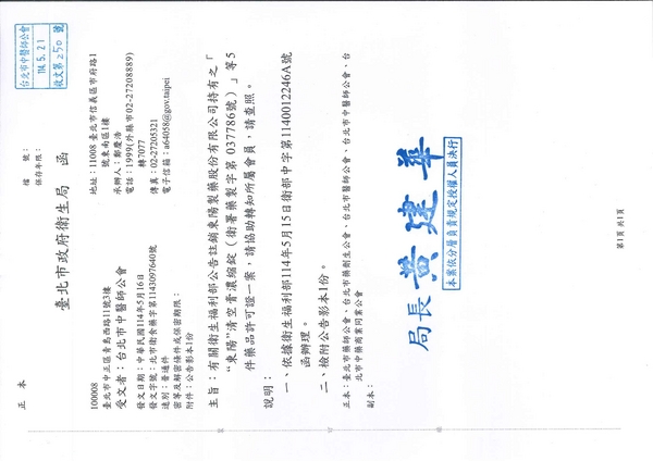 | 台北市中醫師公會 官網:http://www.tpcma.org.tw 地址:台北市中正區青島西路11號3樓 E-mail:tp.cma@msa.hinet.net 電話:(02)2314-3456(代表號) 傳真:(02)2314-8181 |