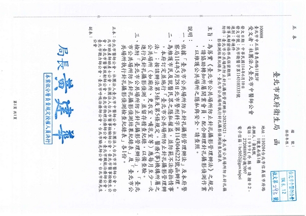 | 台北市中醫師公會 官網:http://www.tpcma.org.tw 地址:台北市中正區青島西路11號3樓 E-mail:tp.cma@msa.hinet.net 電話:(02)2314-3456(代表號) 傳真:(02)2314-8181 |