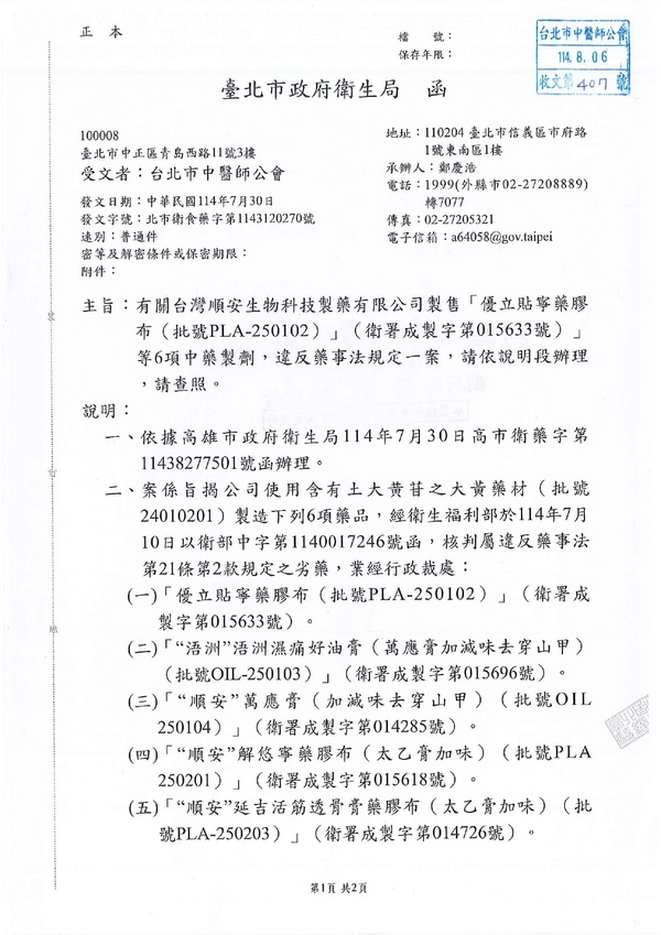 | 台北市中醫師公會 官網:http://www.tpcma.org.tw 地址:台北市中正區青島西路11號3樓 E-mail:tp.cma@msa.hinet.net 電話:(02)2314-3456(代表號) 傳真:(02)2314-8181 |