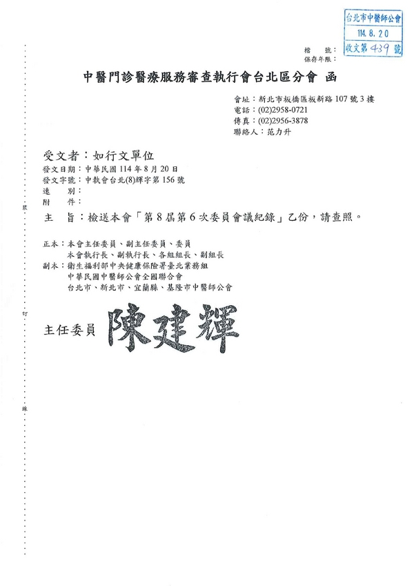 | 台北市中醫師公會 官網:http://www.tpcma.org.tw 地址:台北市中正區青島西路11號3樓 E-mail:tp.cma@msa.hinet.net 電話:(02)2314-3456(代表號) 傳真:(02)2314-8181 |