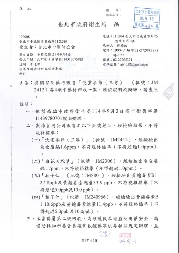 | 台北市中醫師公會 官網:http://www.tpcma.org.tw 地址:台北市中正區青島西路11號3樓 E-mail:tp.cma@msa.hinet.net 電話:(02)2314-3456(代表號) 傳真:(02)2314-8181 |