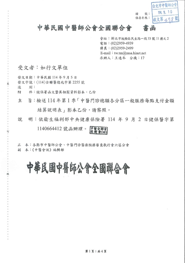 | 台北市中醫師公會 官網:http://www.tpcma.org.tw 地址:台北市中正區青島西路11號3樓 E-mail:tp.cma@msa.hinet.net 電話:(02)2314-3456(代表號) 傳真:(02)2314-8181 |