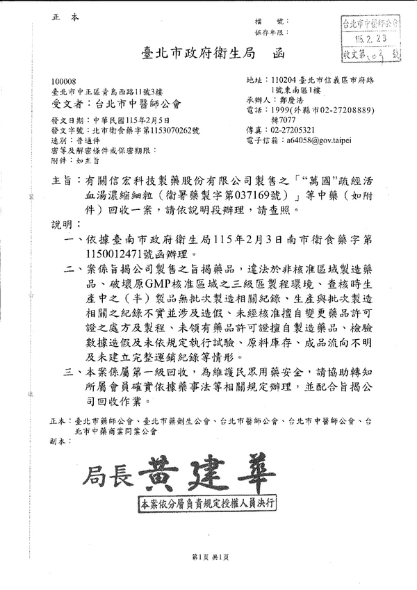| 台北市中醫師公會 官網:http://www.tpcma.org.tw 地址:台北市中正區青島西路11號3樓 E-mail:tp.cma@msa.hinet.net 電話:(02)2314-3456(代表號) 傳真:(02)2314-8181 |
