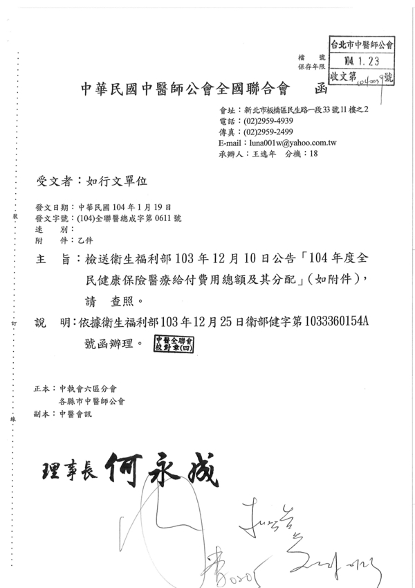 | 台北市中醫師公會 官網:http://www.tpcma.org.tw 地址:台北市中正區青島西路11號3樓 E-mail:tp.cma@msa.hinet.net 電話:(02)2314-3456(代表號) 傳真:(02)2314-8181 |