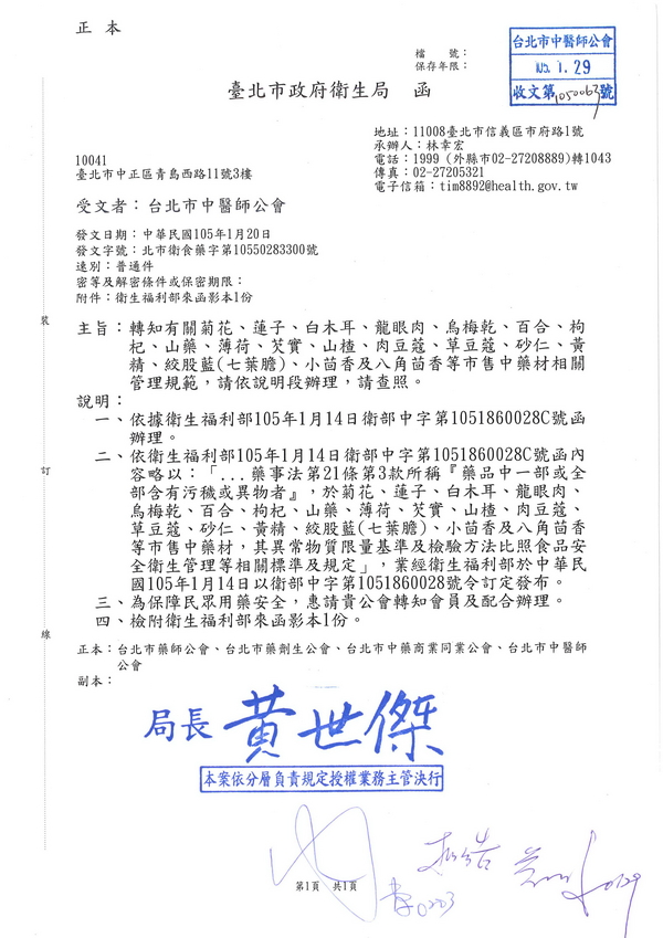 | 台北市中醫師公會 官網:http://www.tpcma.org.tw 地址:台北市中正區青島西路11號3樓 E-mail:tp.cma@msa.hinet.net 電話:(02)2314-3456(代表號) 傳真:(02)2314-8181 |