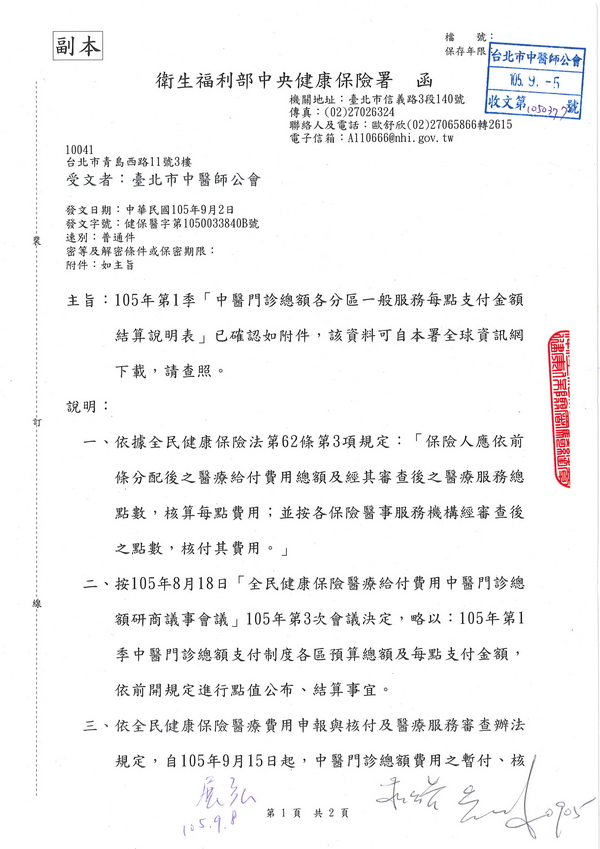 | 台北市中醫師公會 官網:http://www.tpcma.org.tw 地址:台北市中正區青島西路11號3樓 E-mail:tp.cma@msa.hinet.net 電話:(02)2314-3456(代表號) 傳真:(02)2314-8181 |