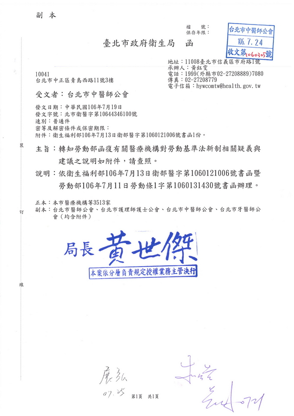 | 台北市中醫師公會 官網:http://www.tpcma.org.tw 地址:台北市中正區青島西路11號3樓 E-mail:tp.cma@msa.hinet.net 電話:(02)2314-3456(代表號) 傳真:(02)2314-8181 |